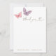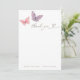 Butterfly Kisses thank you card featuring fluttering purple and pink butterflies and gold dots. Room on the card to write in your own message.