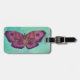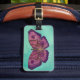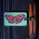 Hand-painted, watercolor butterfly, in shades of purple, with dark brown accents. Set against a contrasting background in hues of green, with hints of yellow and blue