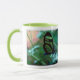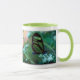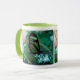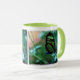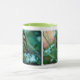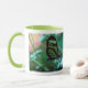 Ethereal shades of turquoise and green of this butterfly photo, printed on both sides of the mug, create a unique impression on a mug with a lime green handle.