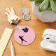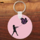Butterfly on a Leash key chain. A minimalist vector design featuring a little girl tugging a black and purple butterfly on a leash. A cute gift for fans of absurdism, minimalist vector art, and pop surrealism.