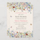 This is a sweet and colourful watercolor baby shower invitation for a girl baby. The design features sweet and whimsical butterflies and bees above a field of beautiful, summery delicate wildflower florals in pretty shades of blue, terracotta, pink, rust, purple and yellow.