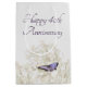 Purple butterfly on white hydrangea on soft white textured background for 40th anniversary.