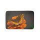 This bath mat features a beautiful butterfly resting on an orange zinnia