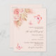 A peach background. Decorated with rose gold and pink florals, roses, pampas grass and butterflies. Personalize and add your names and details details.