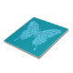 Butterfly silhouette in an abstract, swirled pattern in rich shades of teal blue, turquoise and white