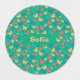 Personalized labels featuring a butterfly pattern design, showcasing a colour scheme of turquoise, purple, and green hues. These custom labels incorporate a butterfly motif with a blend of turquoise, purple, and green colours, allowing for personalization.