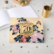Butterfly & Peonies by Hokusai + a golden frame (coat-of-arms or crest style) with large black numbers 70th and "Birthday Celebration" (not customizable) into an half transparent yellow background. Design on hard cover guest book invitation with name and date to customize. You can easily change text (colour, font, size and position) by clicking the personalize or customize button. Matching birthday invitation and birthday Save the Date.