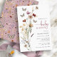 Designed to make a lasting impression, this boho baby shower invitation features elegantly illustrated butterflies dancing among vintage wildflowers in warm hues of tan, brown, rust, terracotta, burnt orange, and sage green. The sophisticated pink script reading ‘Baby Shower’ adds a soft, feminine touch, perfectly complementing the organic, rustic aesthetic. The back of the invitation showcases a coordinating pattern on a blush pink background, offering a beautifully layered look that ties the design together effortlessly. Perfect for those who want a cohesive, stylish celebration, this invitation creates a magical first impression. Celebrate in style with a design as graceful as the occasion itself!