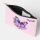 A girly pink background decorated with a purple butterfly, pink and purple flowers. Personalize and add your name.