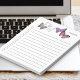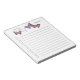 Chic and feminine to-do-list pads, which you can personalize with your name. The design features pretty butterflies at the top with "to do list" lettered in script typography. It has a pink purple and grey color palette and the check boxes and lines help keep your notes in order. Please browse my store for matching and coordinating items.