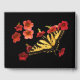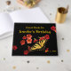 Easily personalize or remove the text on this lovely birthday party guest book which features a yellow and black Tiger Swallowtail butterfly on red and pink Calibrachoa flowers.