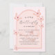 A rose gold background with a rose gold and pink arch. Decorated with butterflies. Personalize and add the name of the mom to be and party details. Text: A Little Butterfly is on her way.