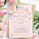 A rose gold background with a rose gold and pink arch. Decorated with a rose gold and blush pink floral, rose flower, green watercolored eucalyptus greenery and butterflies. Personalize and add the name of the mom to be and party details. Text: A Little Butterfly is on her way.