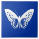 Digital sketch of a butterfly, adapted from a vintage illustration and digitally coloured - white on a deep cobalt blue background