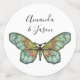 •Medium confetti - A tie dyed ribbon tied in a bow, with circular text, "Tying the Knot". The other butterfly has watercolor wings and colourful crystal image gems for the body and circular text "Happy Moments - Love".