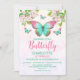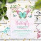 Sweet and summery butterfly theme girl's birthday party invitations. Featuring lovely bunch of watercolor flowers and pink and aqua blue pastel butterflies.