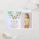 Sweet and summery butterfly theme girl's birthday party invitations. Featuring a lovely bunch of watercolor flowers and pastel butterflies plus the birthday girl's photo alongside all the party details.