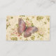 Pink butterfly on Shabby Chic floral background biz cards, brown customizable lettering on back