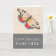 The front of this vintage style birthday greeting card design features a depiction of a butterfly, along with a customizable name and message. The inside features a personalized birthday greeting message. A birthday greeting card like this might be used to send a birthday message to somebody celebrating their birthday.