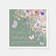 Add a touch of whimsical romance to your bridal shower with this charming napkin design, perfect for an "A Lifetime of Butterflies" themed celebration. The artwork features a delicate mix of watercolor wildflowers and greenery, with multiple pink and purple butterflies fluttering across the front. The color palette includes blush pinks, dusty rose, lilac, lavender, violet, and fresh greens for a soft, garden-inspired look.