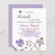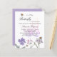 A white background. Decorated with a large butterfly, bees and painted wildflowers in violet and pink. Personalize and add a name and party details.