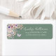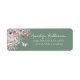 The label now features a sage green background with white fonts, giving it a fresh, elegant, and garden-inspired feel. On the right, your name appears in an elegant script font, while the address is printed below in a classic serif style for a clean, timeless look. The watercolor florals and butterflies in soft blush pinks, dusty rose, lilac, lavender, violet, and fresh greens add a delicate, dreamy touch.