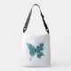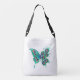 Butterfly with Green Peacock Feathers Crossbody Bag