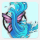 Original drawing by Sandra Gale of a bright purple and black butterfly surrounded by waves of splashing blue water. Can represent a love of the water and riding waves or just a beautiful combination of nature. Great design for kids and adults.
