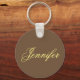 "Jennifer" named Basic Round Keychain . It contains Yellow coloured text "Jennifer" on Brown coloured background .