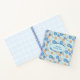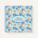 The graphic pattern decorating the front and back of this easy to customize notebook is composed up of needles with orange and blue buttons and is a great place for the sewing enthusiast, quilter or crafts person to jot down project ideas.