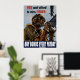 This vintage World War Two poster features a American Army Air Corps Machine Gunner shooting down an enemy fighter plane. It declares, "You Can't Afford To Miss Either -- Buy Bonds Every Day!" Celebrate American and WW2 History with this digitally restored vintage war poster product.