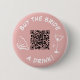 This playful button is perfect for a trendy bachelorette party! Featuring a stylish pink background with a bold "Buy the Bride a Drink!" message, a whimsical martini glass, and a convenient QR code, this button is sure to be a hit with your bridal party and guests. It's a fun and easy way to collect donations for the bride's special day, adding a touch of excitement and laughter to the festivities.