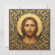 "This profound and richly detailed graphic is a striking religious icon portrait of Jesus Christ. The figure is set against a radiant golden halo and bordered by a magnificent, heavily textured 3D frame featuring intricate gold scrollwork and foliage, all beautifully contrasted against a deep teal or dark blue background. This design's luxurious and traditional feel makes it ideal for high-end wall art (canvas or wood prints), decorative prayer book or Bible covers, religious greeting cards for Christmas or Easter, memorial jewelry or tokens, or any product intended to express faith and spiritual art in a traditional and majestic style."