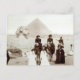 C. 1885 photograph depicting American woman on camelback posing in front of the Sphinx and a Pyramid in Egypt. In the foreground a number of Egyptian guides, in the background other members of the Grand Tour travel party.