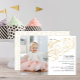 Célébrez votre petit bijou avec cette invitation glamour d'anniversaire avec des illustrations de bijou de parties scintillant en or et de l'espace pour une photo personnalisée. Le message "She’s a Gem" donne le ton d’un thème chic et moderne. Idéal pour les premiers anniversaires, les fêtes des tout-petits, ou tout autre jalon sur le thème des bijoux. S'harmonise parfaitement avec notre collection de fêtes gemstone - casquettes, panneaux, étiquettes de faveur, et plus !