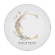 Letter C monogram floral. Letter C in golden brown texture accented with green watercolor compound leaves, flower blossoms and gold dust. Personalized with name in matching font.