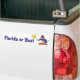 Cute cartoon snowbird bumper sticker says Florida or bust. Wonderful cartoon bird with scarf and hat and big orange feet and the sun shining behind him. Sure to make people laugh.