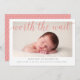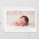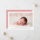 Bienvenue votre doux miracle avec ce faire-part de naissance photo. Doté d'une photo avec le message "Worth the Wait" en couleur rose corail, avec le nom du bébé et les statistiques en gris. Il permet également de prendre une photo à l'arrière.