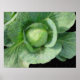 A cabbage plant sits ripe and ready to pick. It's beautiful blue/green leaves sit against a black background. The original is a miniature oil painting by Kathie Miller