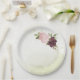 Beautiful wedding paper plate featuring cabernet purple and pink flowers and green leaves