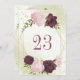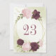 Belle carte de numéro de table avec cabernet fleurs violettes et roses et feuilles verts Les détails de la parties scintillant d'or sont simulés. POUR PLUS DE PRODUITS CORRESPONDANTS cliquez sur la collection ci-dessus ou contactez-moi