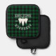 Family Name Cabin Green Buffalo Plaid with Pine Trees Pot Holder