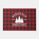 Family Name Cabin Red Buffalo Plaid with Pine Trees Door Mat