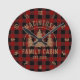 Cabin Family Name Red Buffalo Plaid Large Clock