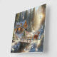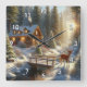 Cabin in the Snow Filled Woods with Deer Square Wall Clock