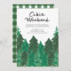 This Cabin Weekend invitation features hand painted evergreen trees and a rustic gingham back design. Perfect for your next mountain getaway or bachelorette weekend in the woods! Pairs perfectly with our matching itinerary.