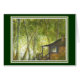 Carte avec ma peinture "cabine par le lac" là-dessus