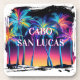This plastic hard coaster set is shown with a Cabo San Lucas beach palm print.