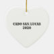 The front of this ornament features the arch at Land's End at sunset. On the back is black text that reads "Cabo San Lucas." you can customize with a date if you chose.