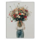 Une personne habillée en jeans décontractés et d'un simple chapiteau blanc tient un énorme bouquet de fleurs sauvages qui obscurcit complètement leur visage. Le grand agencement coloré de marguerites, de pavots et autres floraisons vibrantes contraste avec l'arrière - plan et la tenue minimaliste, créant un visuel saisissant qui met en valeur la beauté de la nature. La scène dégage une sensation de fantaisie et de sérénité, car les fleurs occupent le devant de la scène, symbolisant la croissance, la vie et la simplicité.